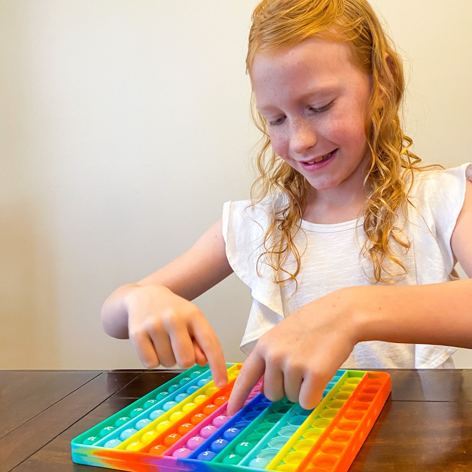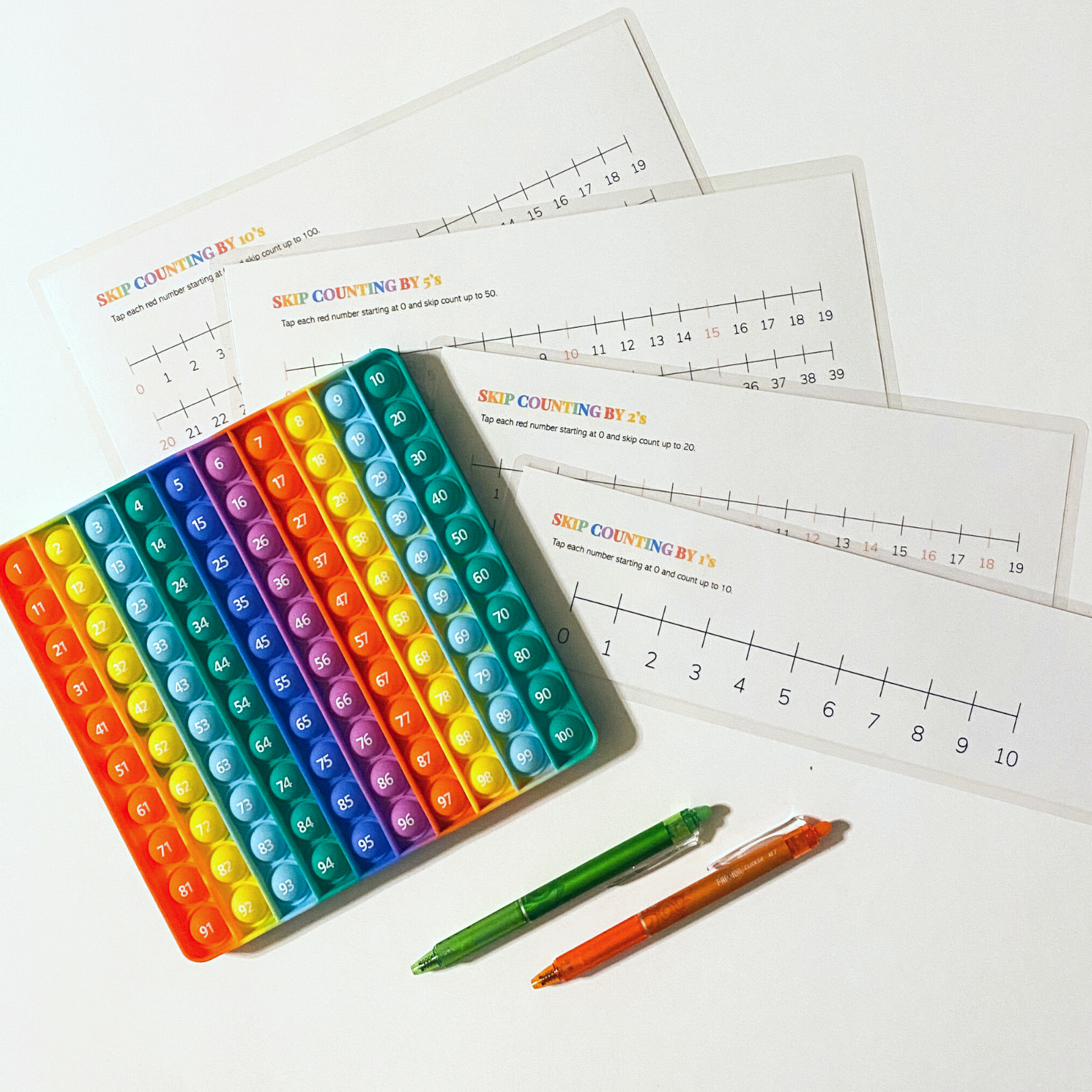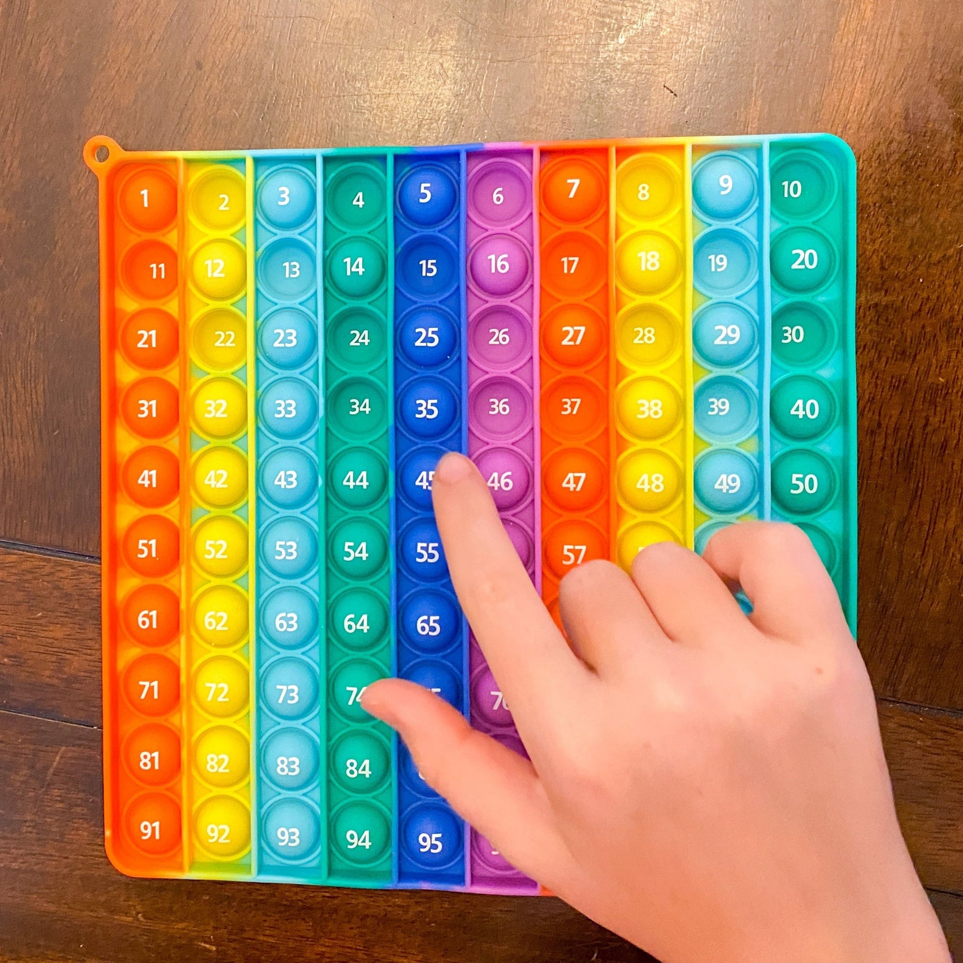 Is your child struggling with skip counting or number sense? Add an interactive and tactile aspect to learning to count with this Numbered Pop-It! This rainbow pop-it will be a learning favorite. Thick and great quality, this is a must have. Pairs perfectly with the Pop-it Gameboard. Hurry, limited quantities available! Includes 4 Numberlines!